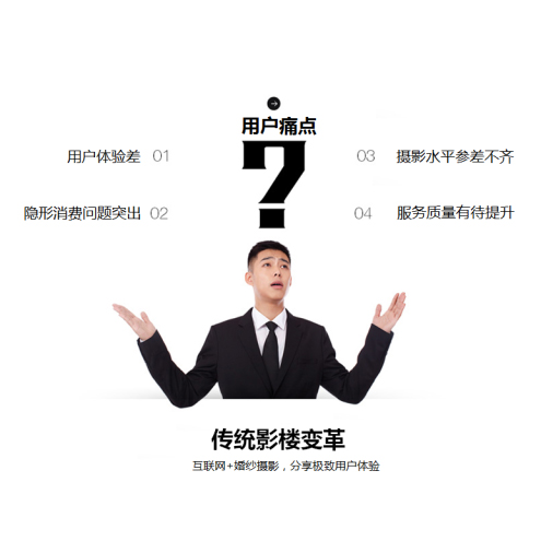 在互联网思维的影响下,以传统影楼为主的婚纱摄影市场也不断谋求变革创新。特别是在当下,传统影楼开始显露越来越多的弊端,用户体验差、隐性消费、服务质量、摄影水平等问题层出不穷