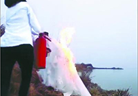 - 为拍摄效果,往新娘身上放了把火点燃婚纱