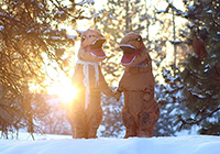 据英国《每日邮报》近日报道,近日,两位美国摄影师在华盛顿州斯波坎谷的一座公园拍摄了一组逗趣、温馨又感人的照片:一对假扮的夫妇穿着外形为霸王龙的服装,摆出各种亲昵的造型,场